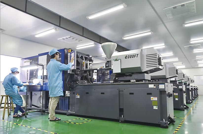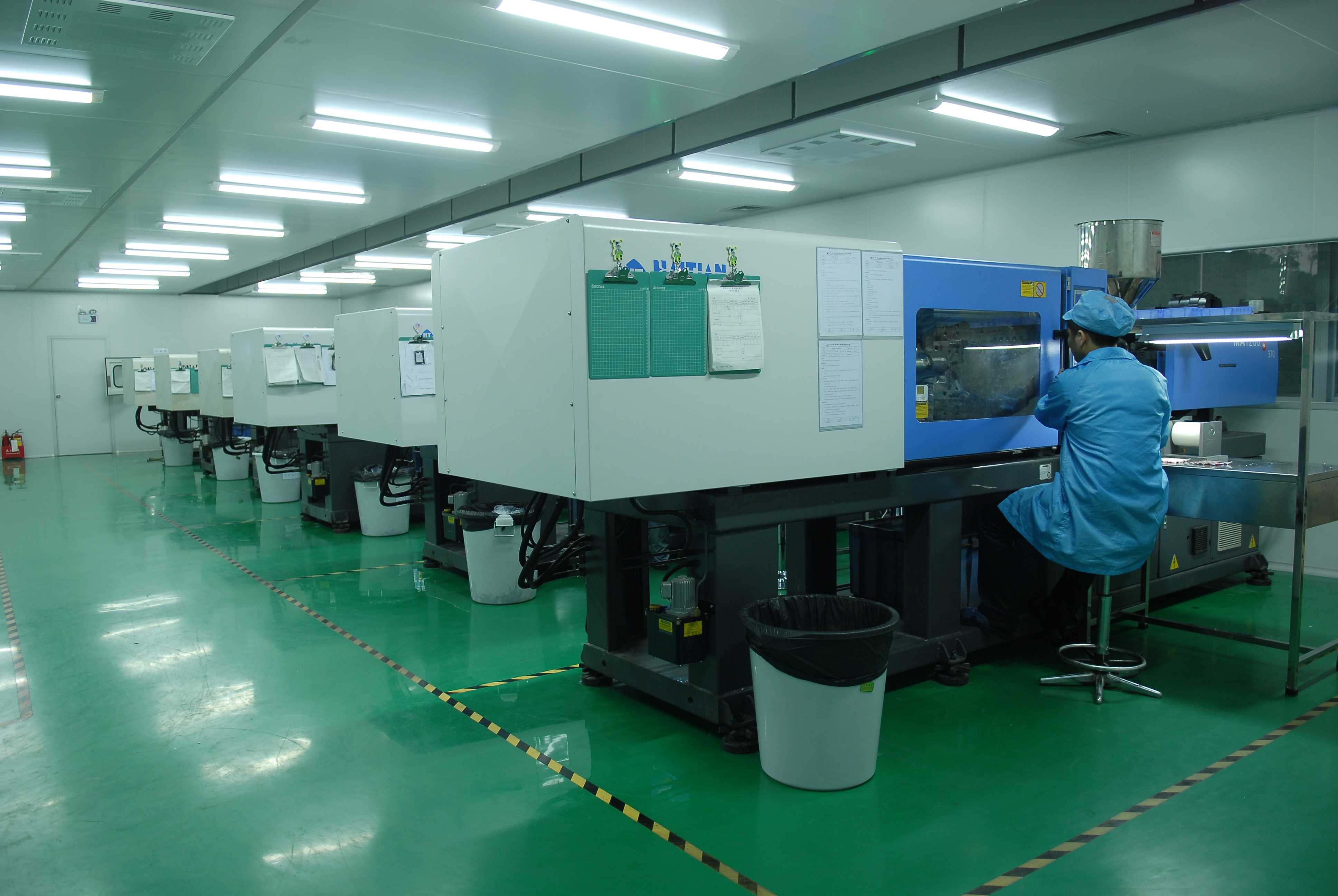 There are 42 injection molding machines of class 100000 dust-free purification workshop, Sumitomo Haitian and other machines, B80 tons (small products) to 380 tons (large products), including 13 injection molding machines of more than 180 tons. The independent material channel is separated from the personnel channel to ensure that the workshop is clean and dust-free