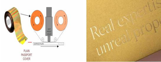 烫印俗称"烫金",IMR工艺类似于烫印工艺,是指在精装书封壳的封一或封四季书背部分烫上色箔等材料的文字和图案,或用热压方法压印上各种凸凹的书名或花纹
